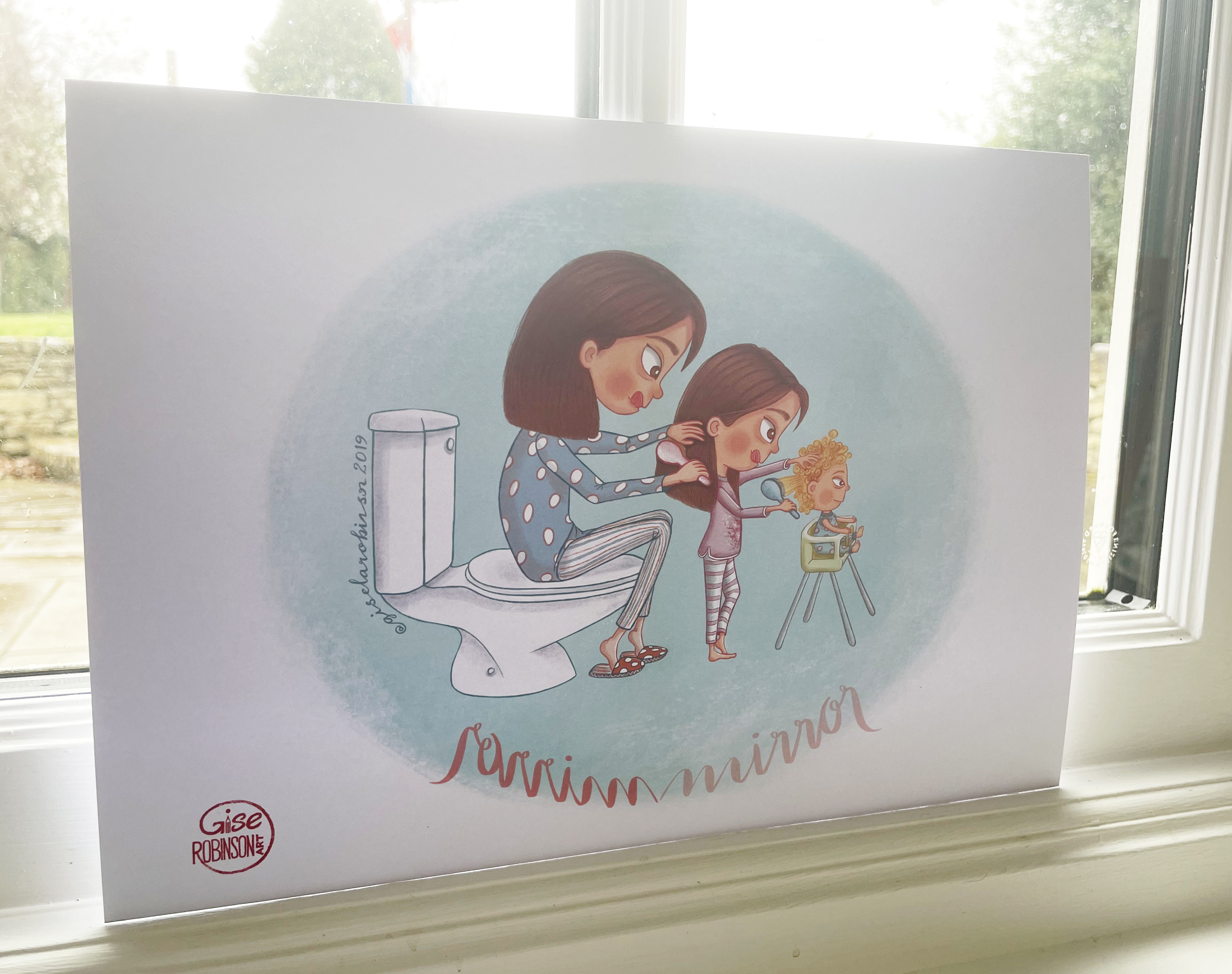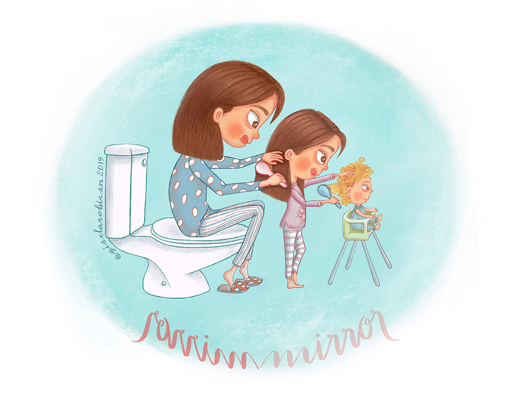 This week, in the 52 Week Illustration Challenge, the theme is MIRROR. What a better mirror in life than looking at our own children. This illo design and painted digitally and with it I wanted to show how the most simple things we do in our everyday life can be really magic.