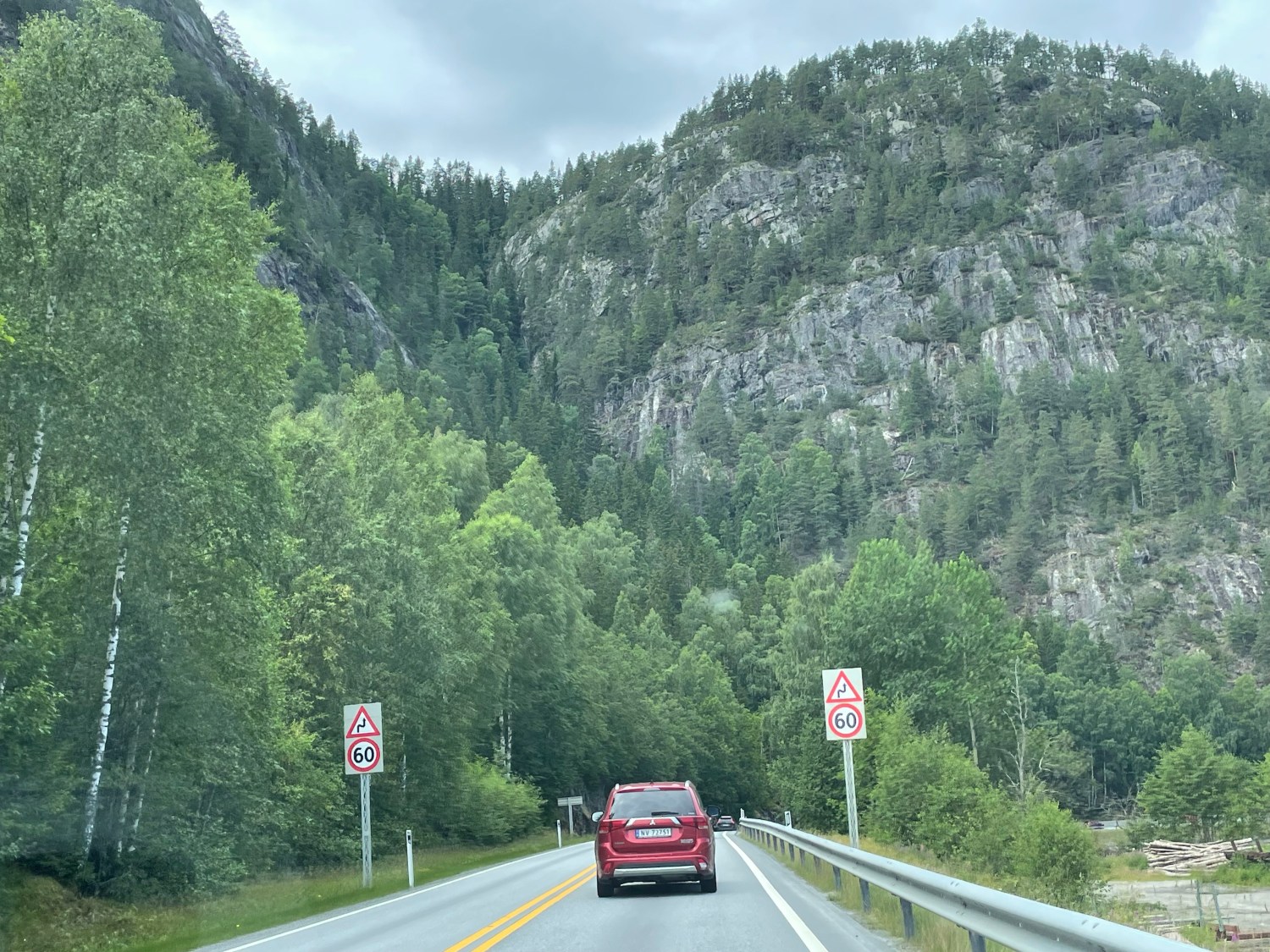 First stop was Gailo, 220 km west of Oslo. A ski resort transformed for summer, with streams and hikers replacing ski runs and snowboards. The roads were steep wining – a bit scary for me but with views to die for. It seems that rock falls are a common event around there and we could certainly see the aftermath. In fact, for one we had to join a convoy to navigate what was left of the road that one had left behind.